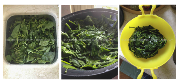 Gli spinaci saranno molto verdi, cotti ma sostenuti in modo che dovendoli poi ricuocere non diventeranno mosci e manterranno una consistenza gradevole in bocca.