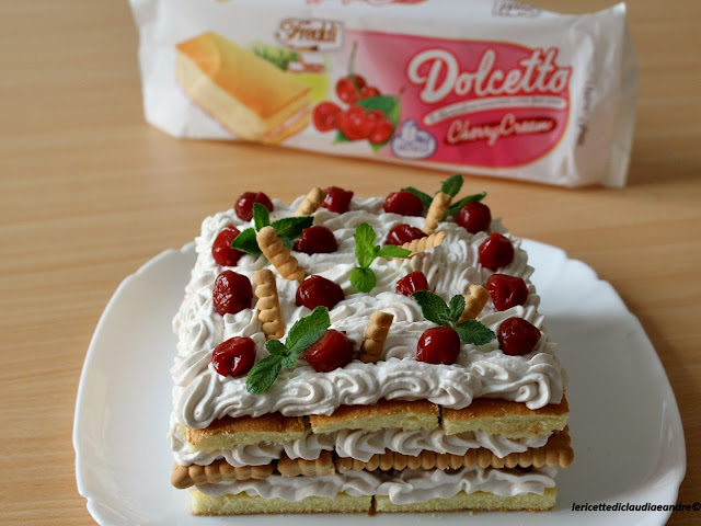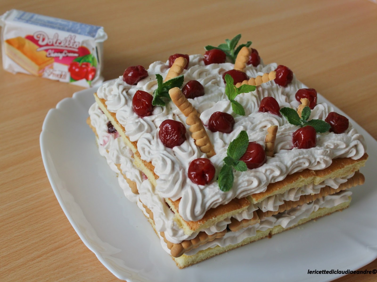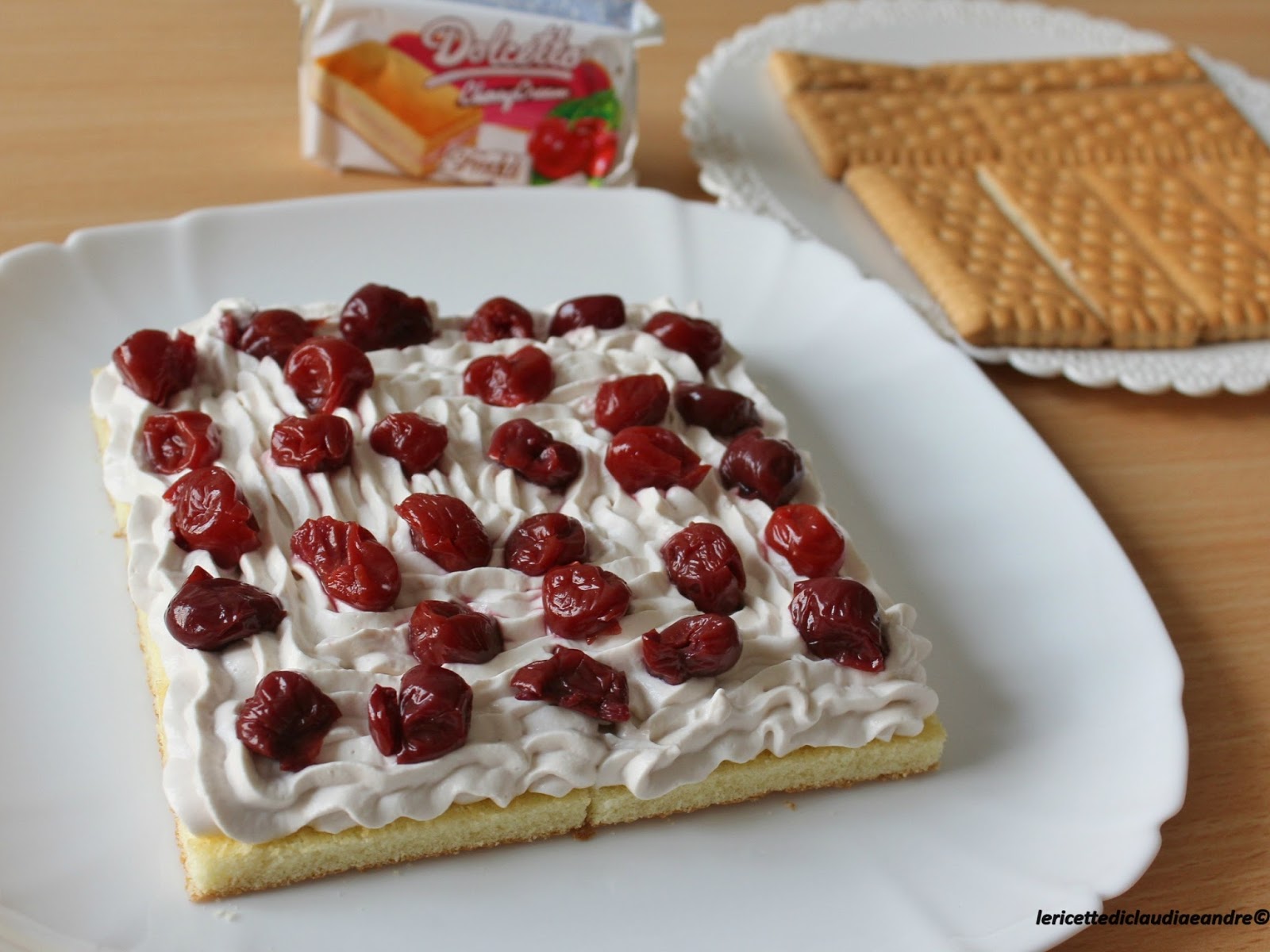 - Farcire nuovamente con della crema e amarene sciroppate e coprire con l’altro strato di merendine rimaste.
