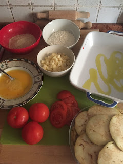 Nella teglia già unta, formare uno strato base con le melanzane impanate.