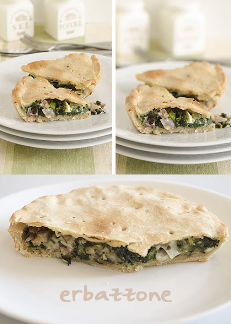 Come al solito mi sono inventata il mio erbazzone, che poi si discosta solo leggermente dall’originale: per la sfoglia mi sono attenuta allo strutto, ma con moderazione… forse dovrebbe essere più sottile ma oggi mi è uscito così.