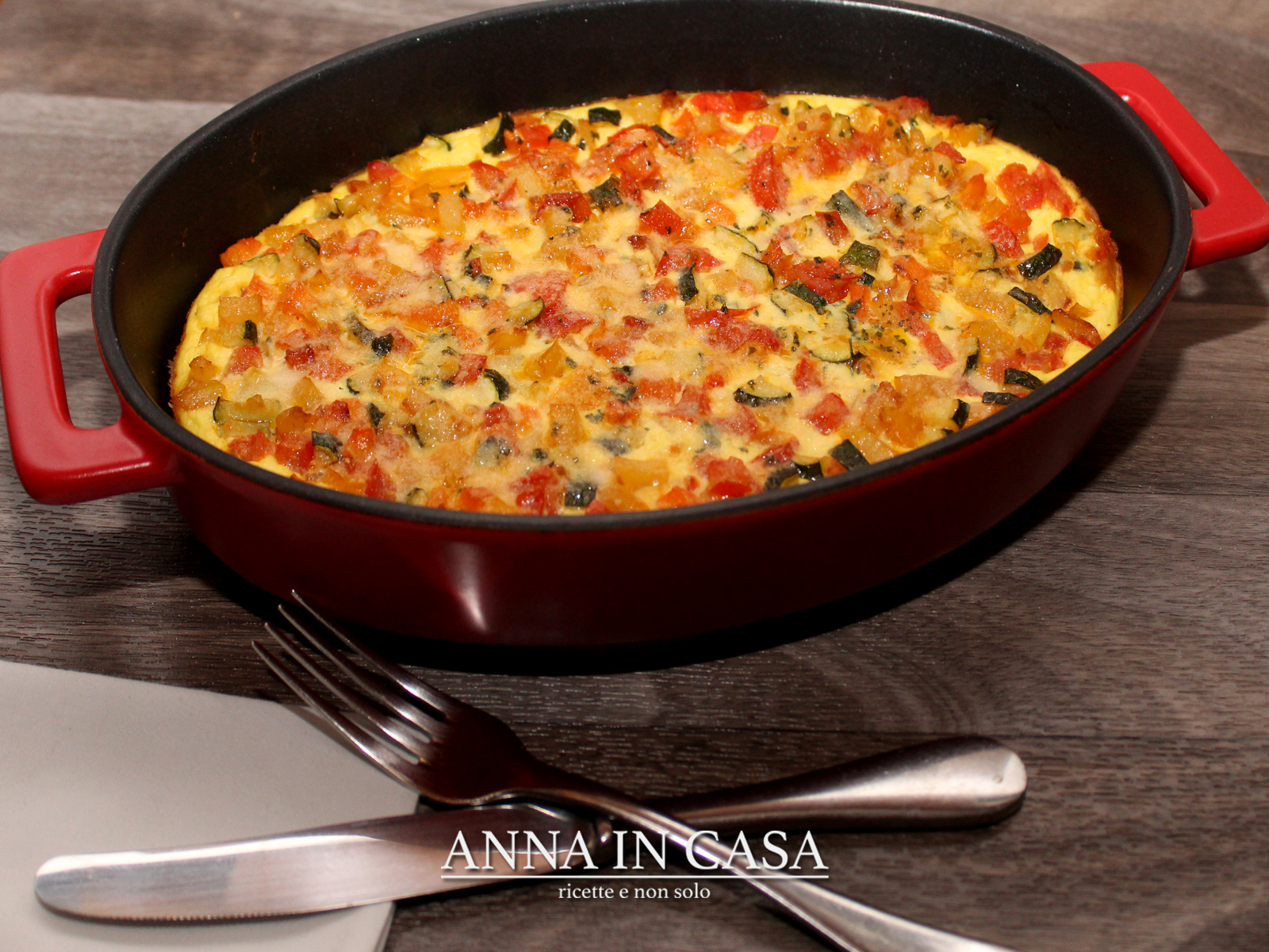 Quando le verdure sono pronte versarle nella teglia, coprire con il composto di uova e infornare per 20-25 minuti.