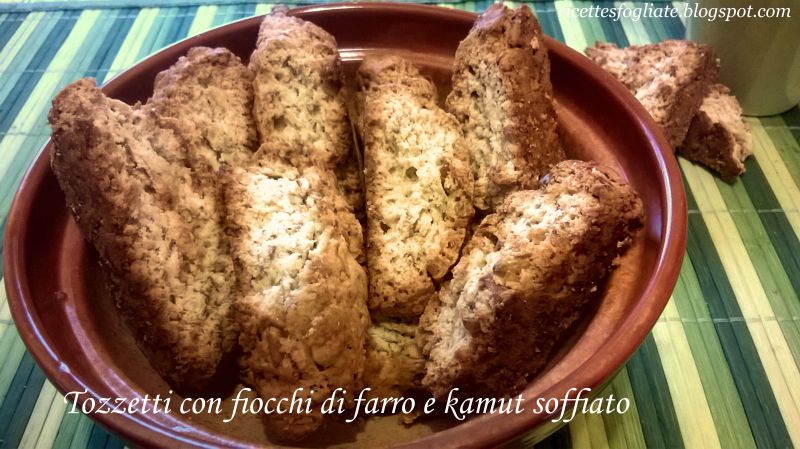 Ingredienti: 350 gr di farina 00, 180 gr di zucchero di canna, 1 pz di sale, 2 uova medie, 80 gr di burro, 50 ml di latte (o latte di kamut), 100 gr di fiocchi di farro, 30 gr di kamut soffiato, 1 bustina di lievito vanigliato per dolci, la scorza grattugiata di un limone.