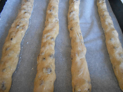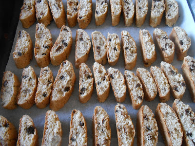 Sfornateli, fateli intiepidire e tagliateli a fette. Rimettete i biscottini nuovamente in forno per farli biscottare, 10 minuti circa a 170°.
