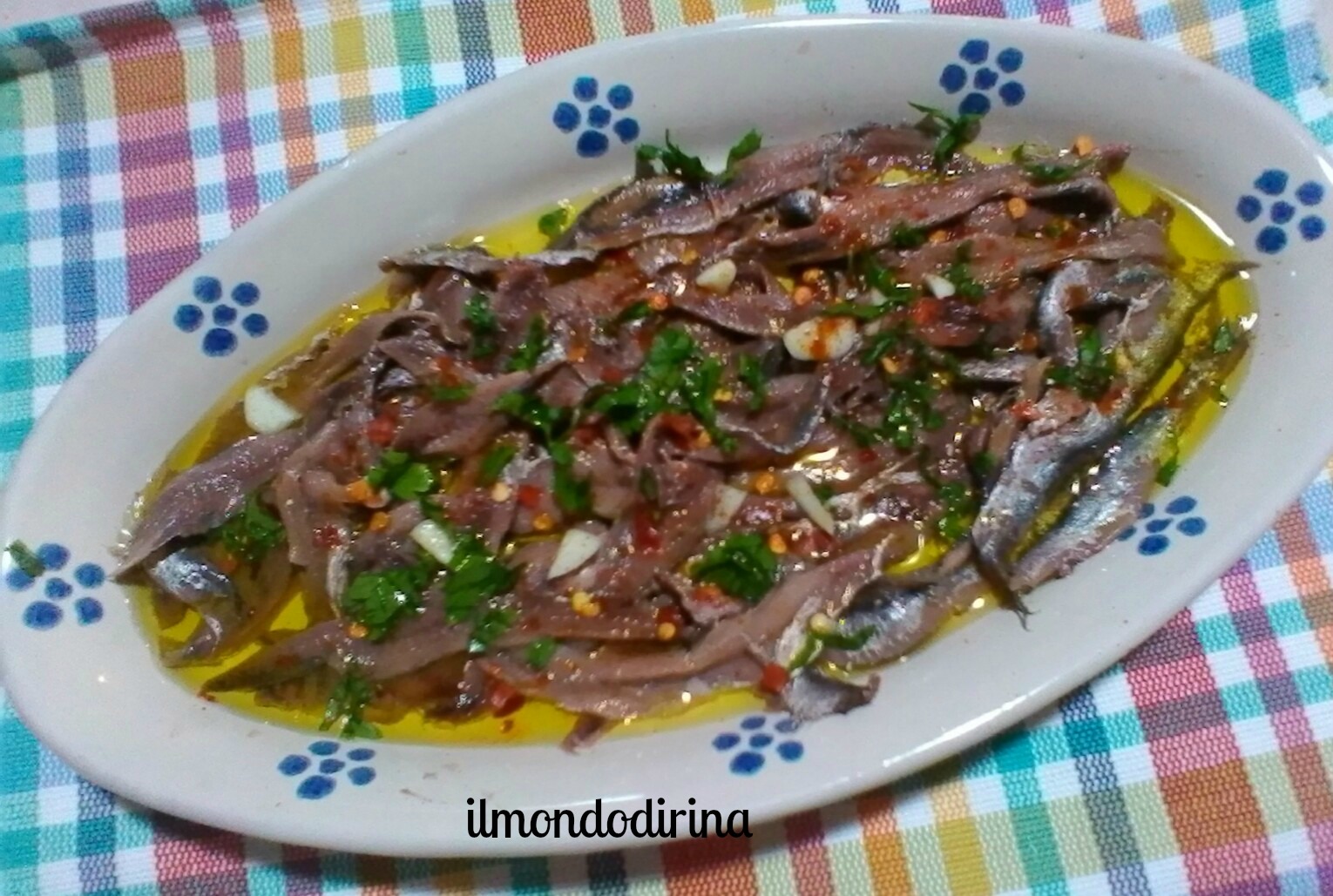 Le sarde vanno poi dissalate sotto un filo d’acqua corrente, spinate e aperte a libro. Messe quindi per un’ora in una soluzione di acqua e aceto bianco ( uno e uno ) ed infine asciugate delicatamente con carta assorbente. A questo punto una parte si può conservare nei vasetti sott’olio e una parte ” acconzata ” in un vassoio con aglio, prezzemolo, peperoncino piccante ed olio evo.