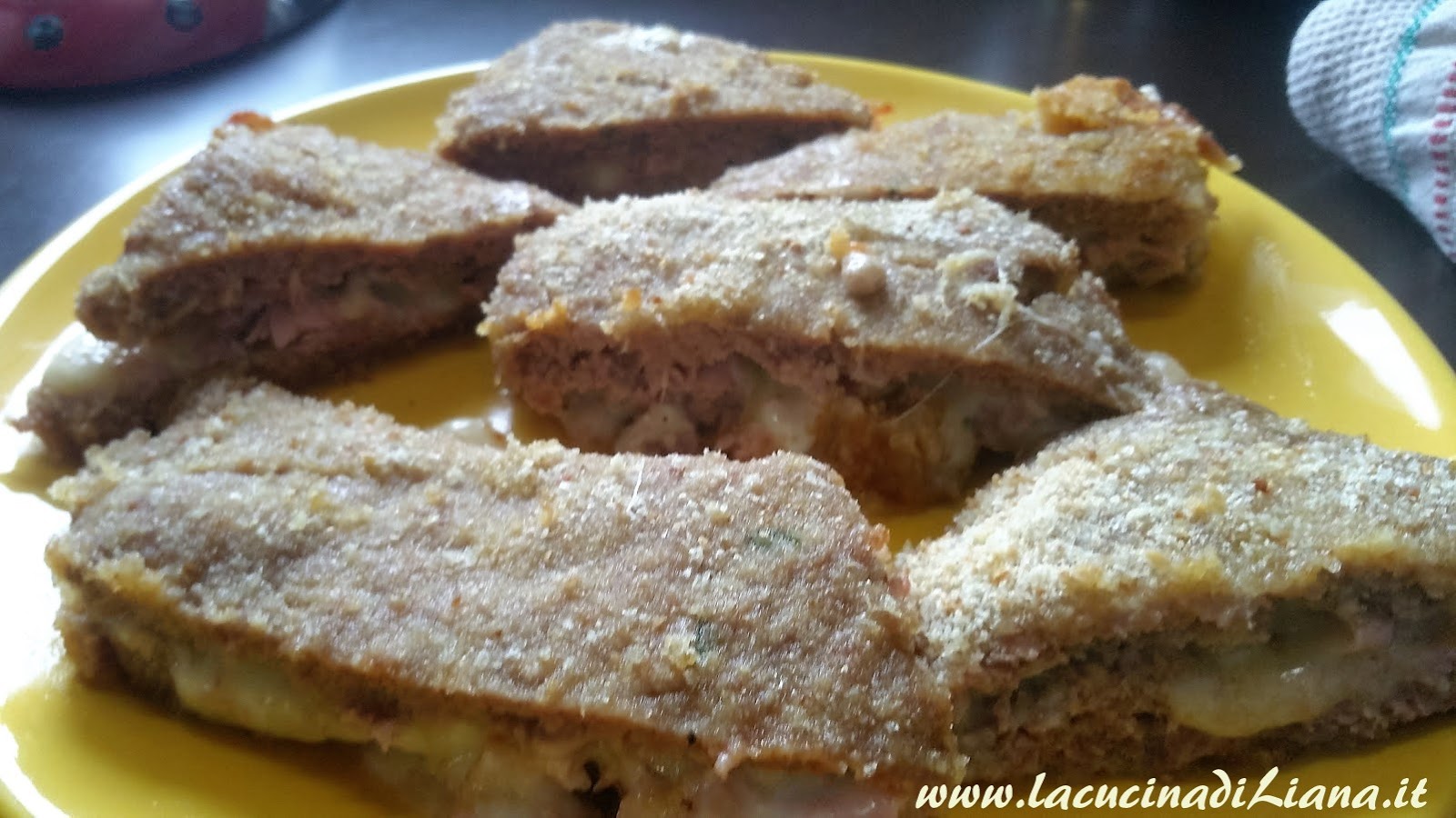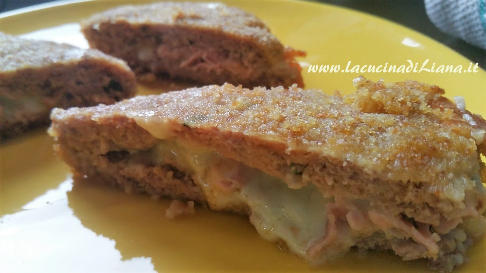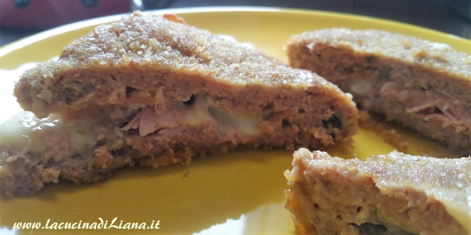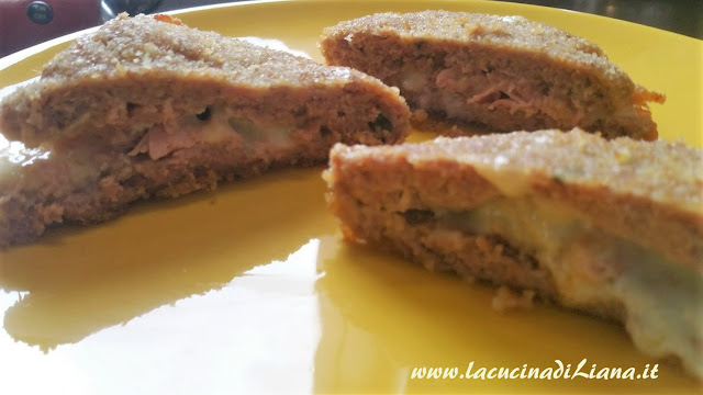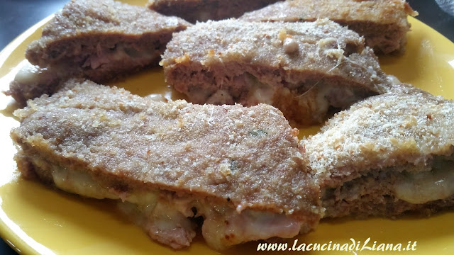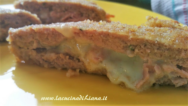 I tramezzini di carne, sono una golosa soluzione per un secondo a base di carne macinata di vitello, farciti con prosciutto cotto e formaggio filante, impanati e cotti in forno. LI ho comprati spesso in macelleria, ma fatti in casa li trovo ancora più gustosi.