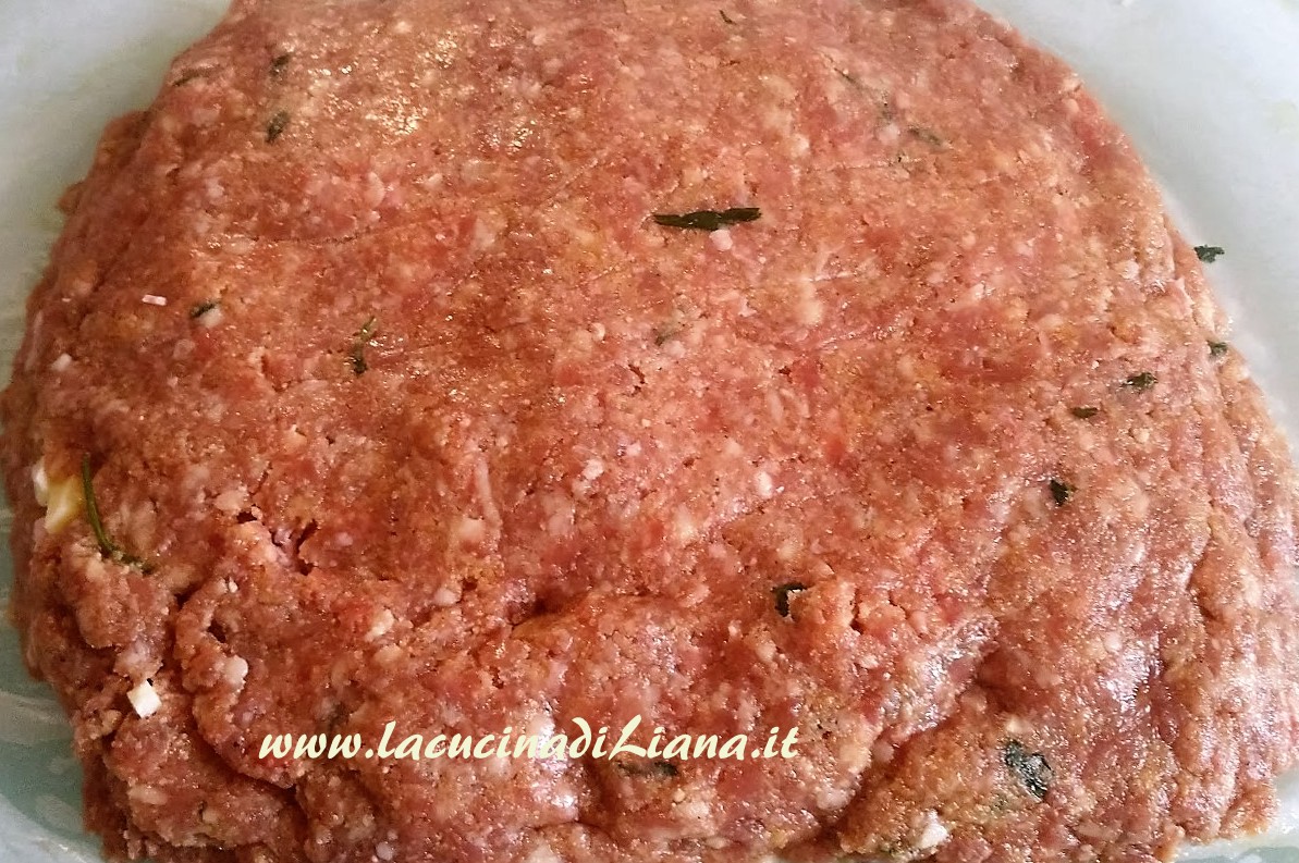 Mescolare la carne con il parmigiano grattugiato, le uova, del prezzemolo tritato, sale, pepe e una manciata di pangrattato, in modo da avere un composto omogeneo.