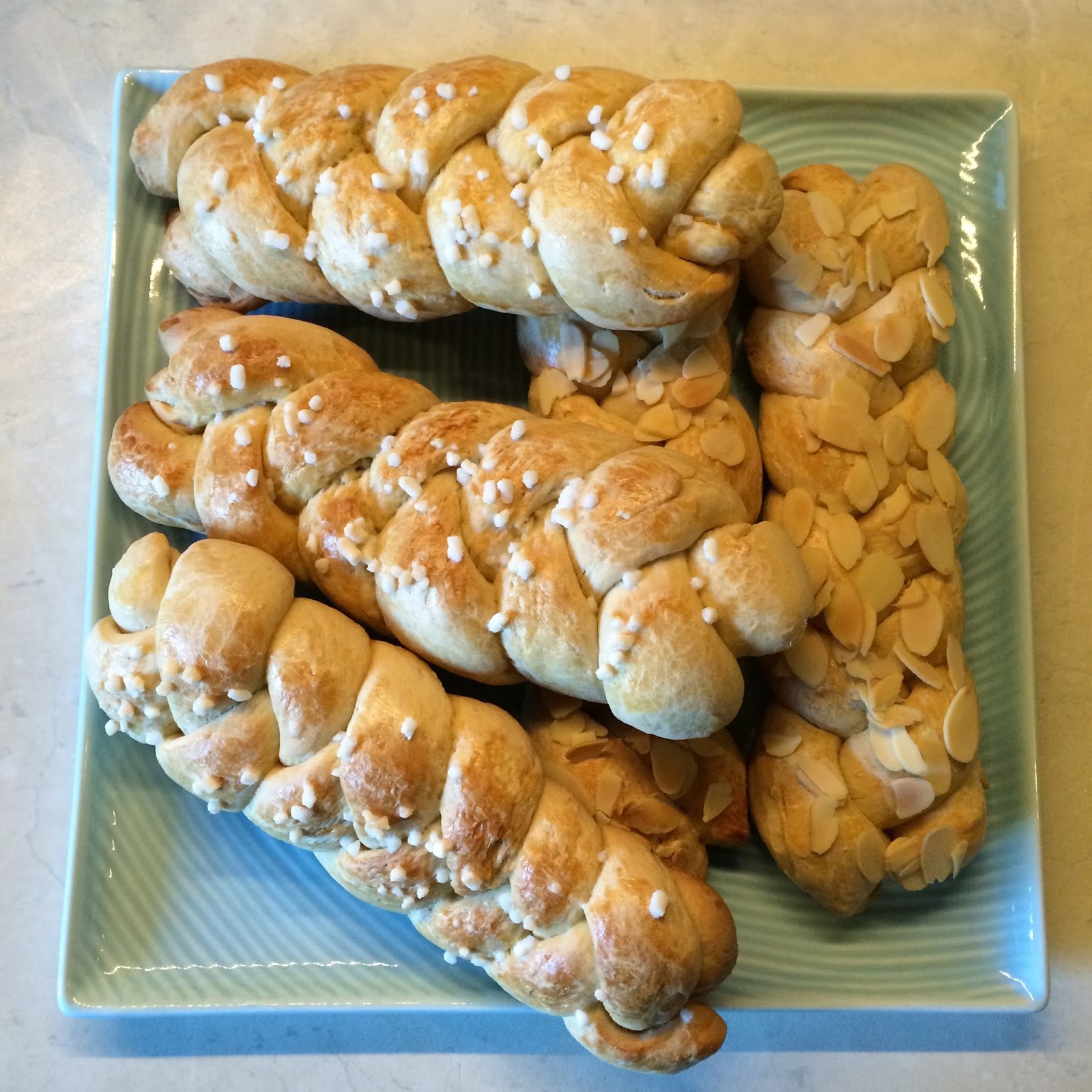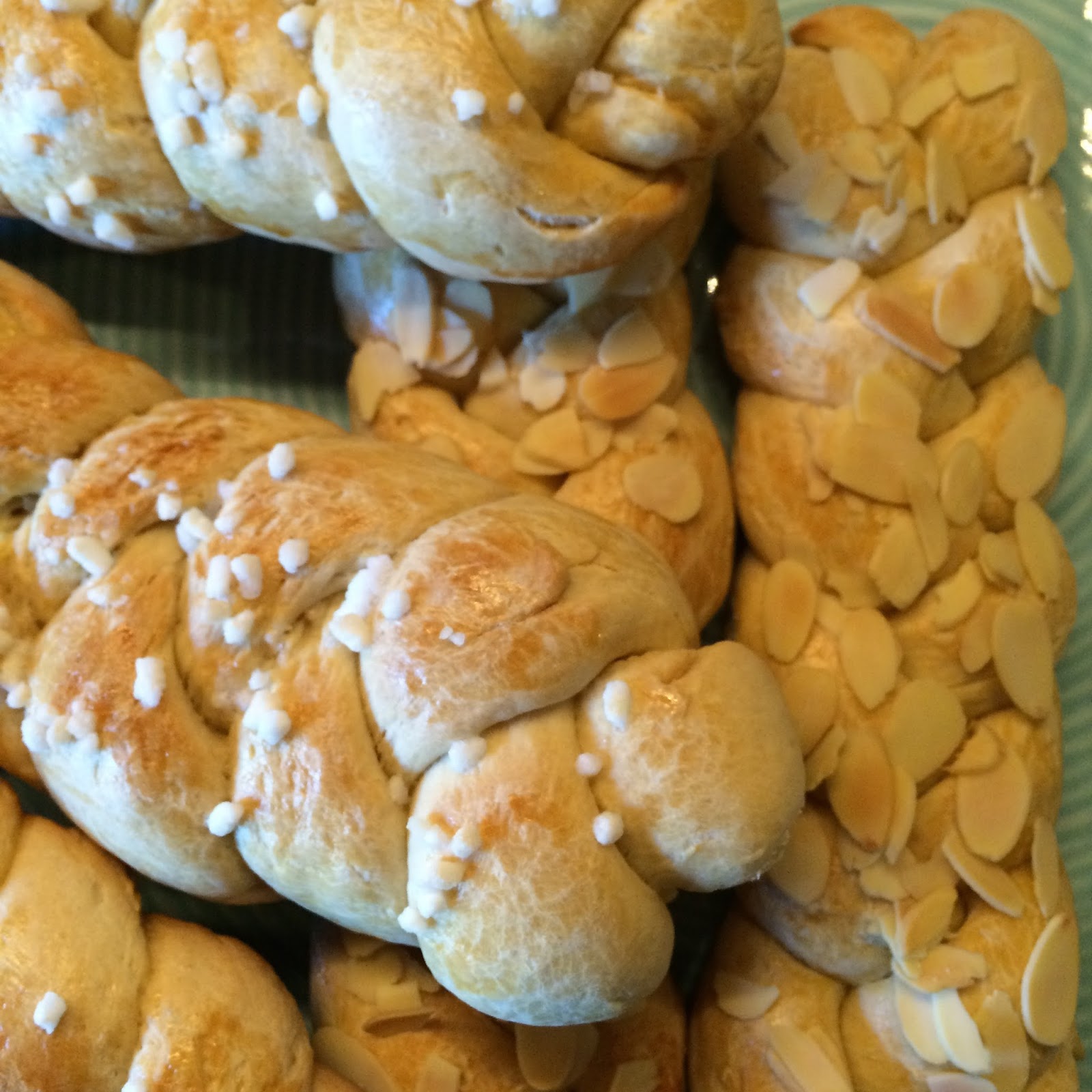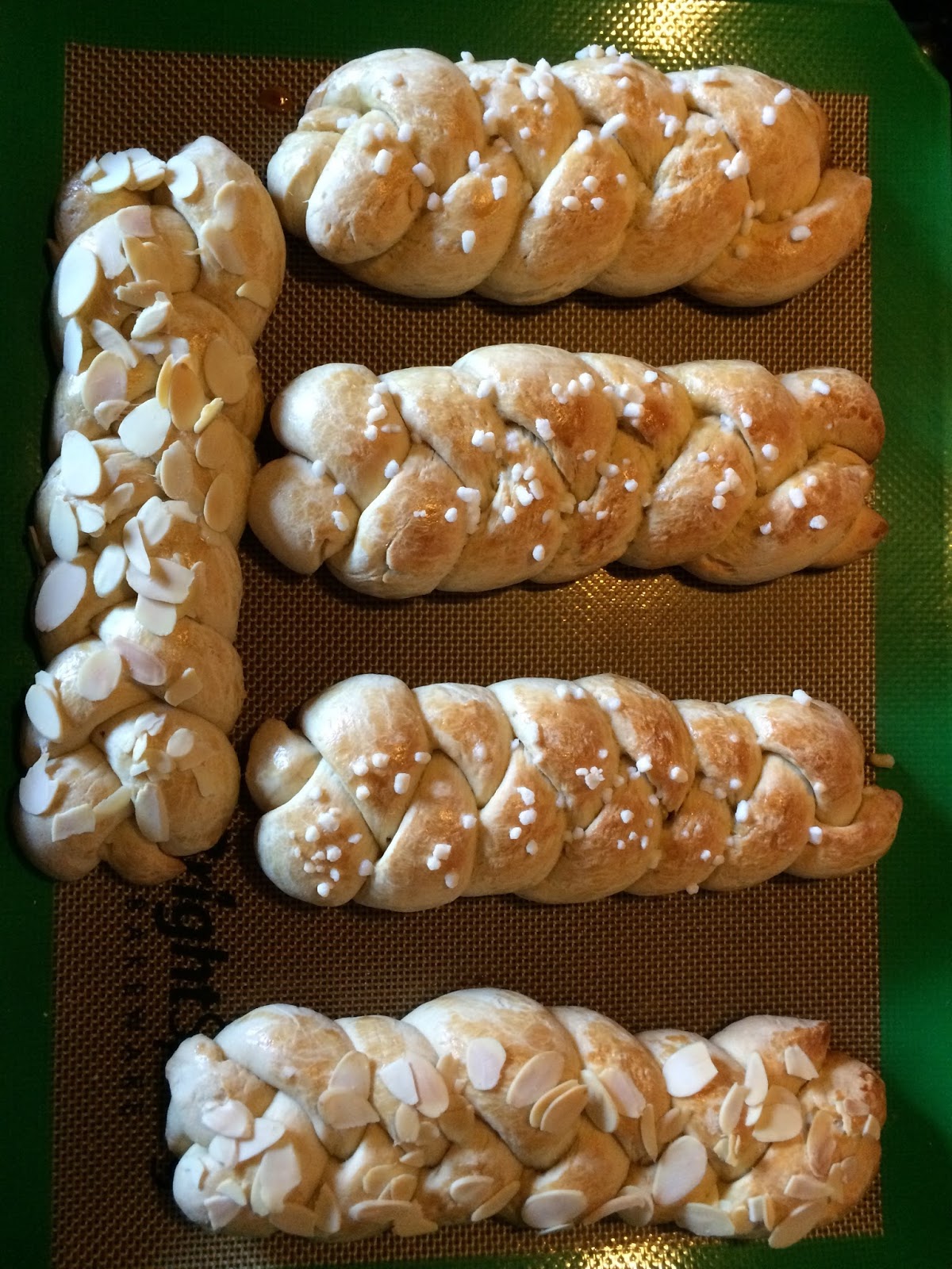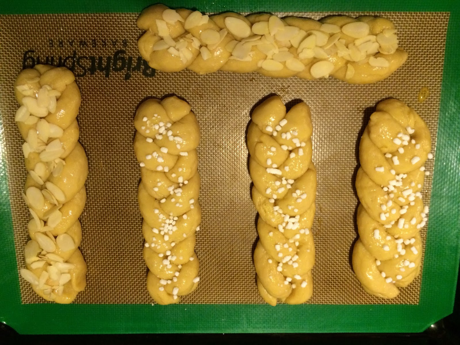 le ho spennellate con dell’uovo sbattuto, quindi su alcune ho messo della granella di zucchero e su altre delle scaglie di mandorla
