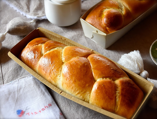 - emulsione di 15 g di latte, 1 uovo e 1 pizzico (ma proprio un pizzico) di sale per pennellare la superficie della treccia prima della cottura.