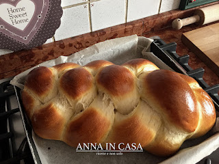 Una volta che l’impasto ha raddoppiato il suo volume, trasferirlo sulla spianatoia e ricavare 4 bastoncini (se non vi fidate a fare la treccia a 4 capi di cui purtroppo non ho gli scatti, potete farla 3 tre come una treccia normale) e unirli ad una estremità formare la treccia, chiudendo alla fine anche l’altra estremità.