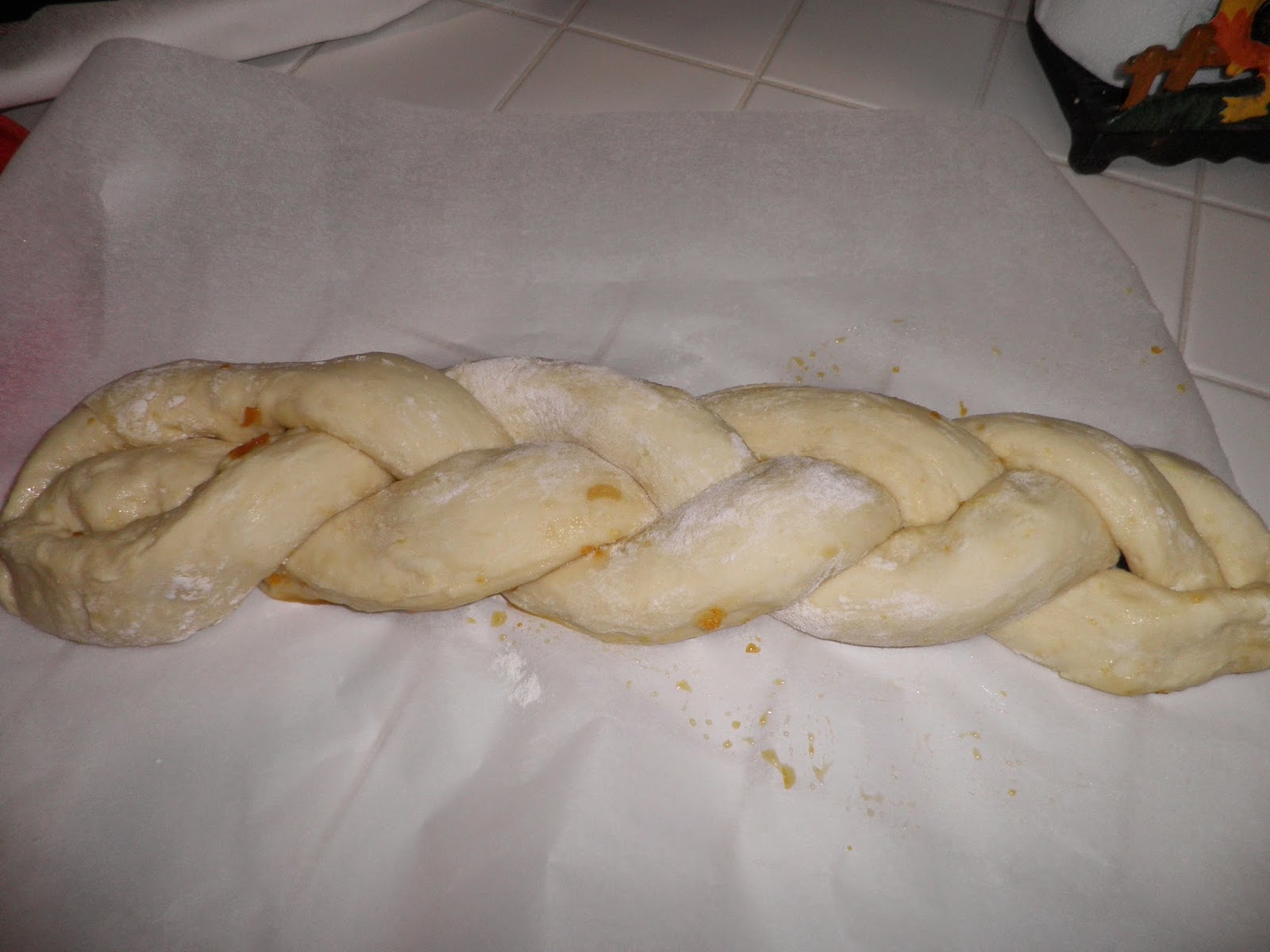 Ho richiuso ogni rotolo premendo con le dita e ho formato una treccia con i tre “salamini” posizionandola su un foglio di carta da forno.