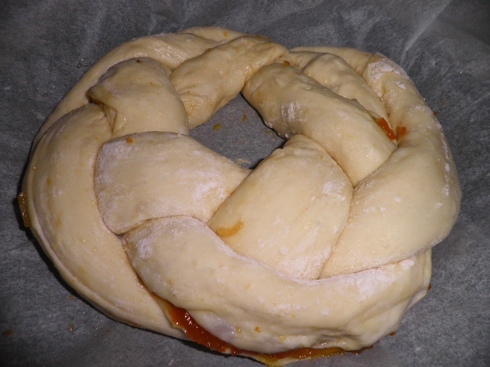 Ho chiuso ad anello la treccia e ho lasciato lievitare coperta da un canovaccio per altre 3 ore ( considerate che ho fatto il primo impasto in mattinata e ho infornato verso le 19).