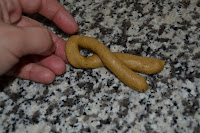 - Dividere l’impasto a tocchetti e formare delle striscioline lunghe circa 8 cm e spesse 1/2 cm.