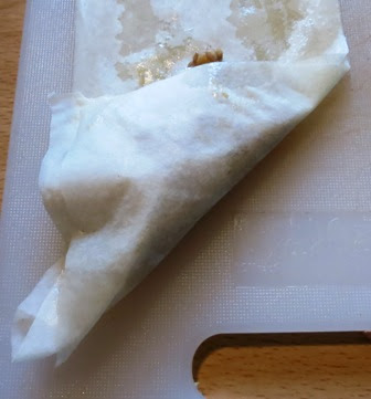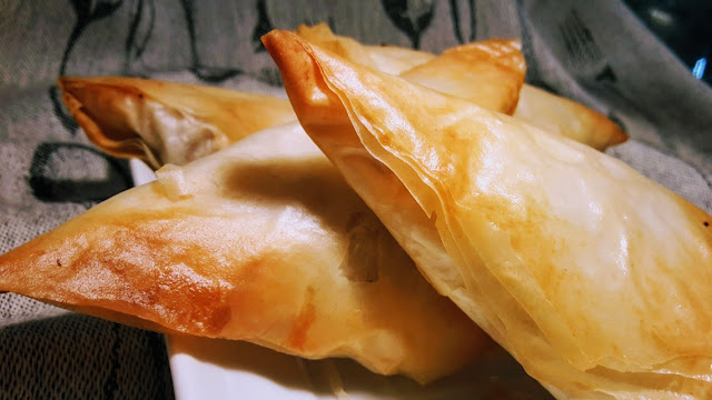 E continuare a ripiegare sempre il triangolo fino alla fine del foglio di pasta phillo ..