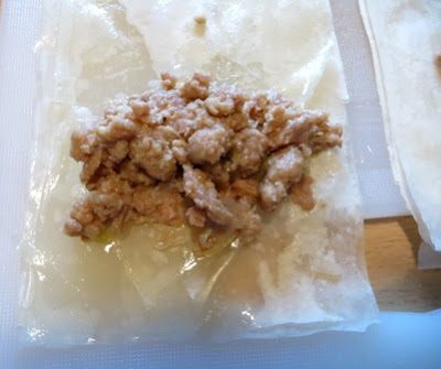 Porre alla base di ogni rettangolo un porzione di impasto come si vede in foto..