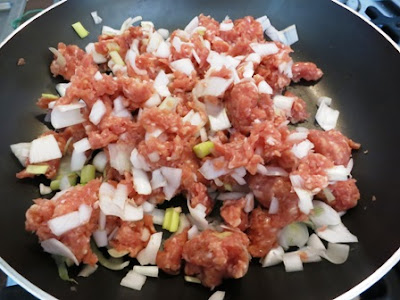 In una padella antiaderente soffriggere dolcemente la salsiccia sbriciolata e i cipollotti tritati abbastanza finemente…