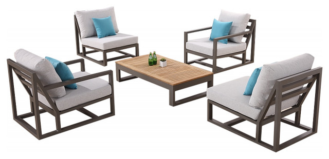 Tribeca 5 Piece Dining Set Driftwood With Sand Cushions
