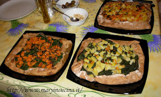 Impastare la sfoglia ottenendo un panetto e tenerlo da parte. Nel frattempo sbucciare e tagliare a cubetti le patate e lessarle per 25 minuti. Tagliare a cubetti la zucca e ripassarla in padella con un po’ d’olio per qualche minuto. Ammorbidire bietole e borragine in una pentola coperte d’acqua, dopo averle tagliate a striscioline. E’ importante questo passaggio soprattutto per la borragine perchè le foglie sono spinose un po’ come l’ortica, con la cottura questo effetto passa ma nel lavarle e tagliarle si sentono tutte le spine ;-) , ma ne vale la pena perchè è aromatica e dolcissima.