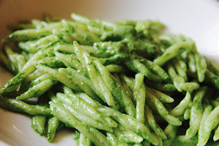 Una volta che le trofie saranno cotte, scolatele, conditele con il pesto di rucola e servite.