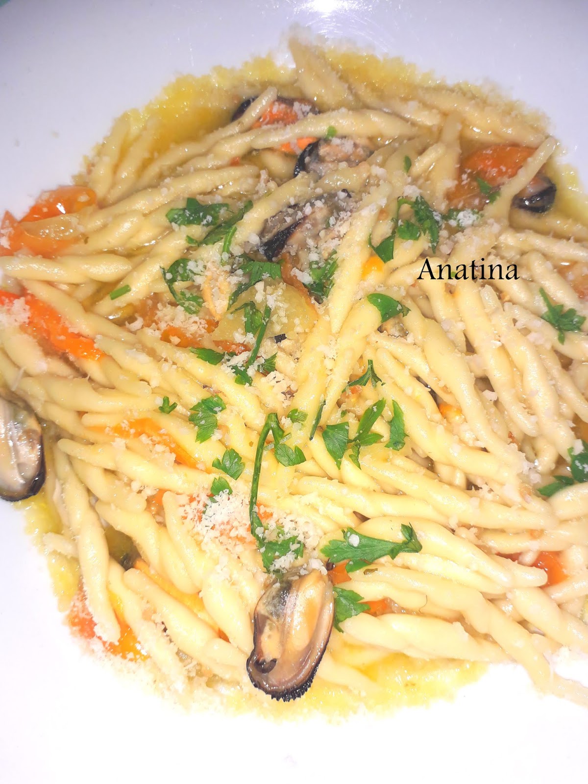 anche nel sugo),giusto il tempo che si aprono le estraete dal guscio eliminando il bisso e con poca della loro acqua le terrete da parte.