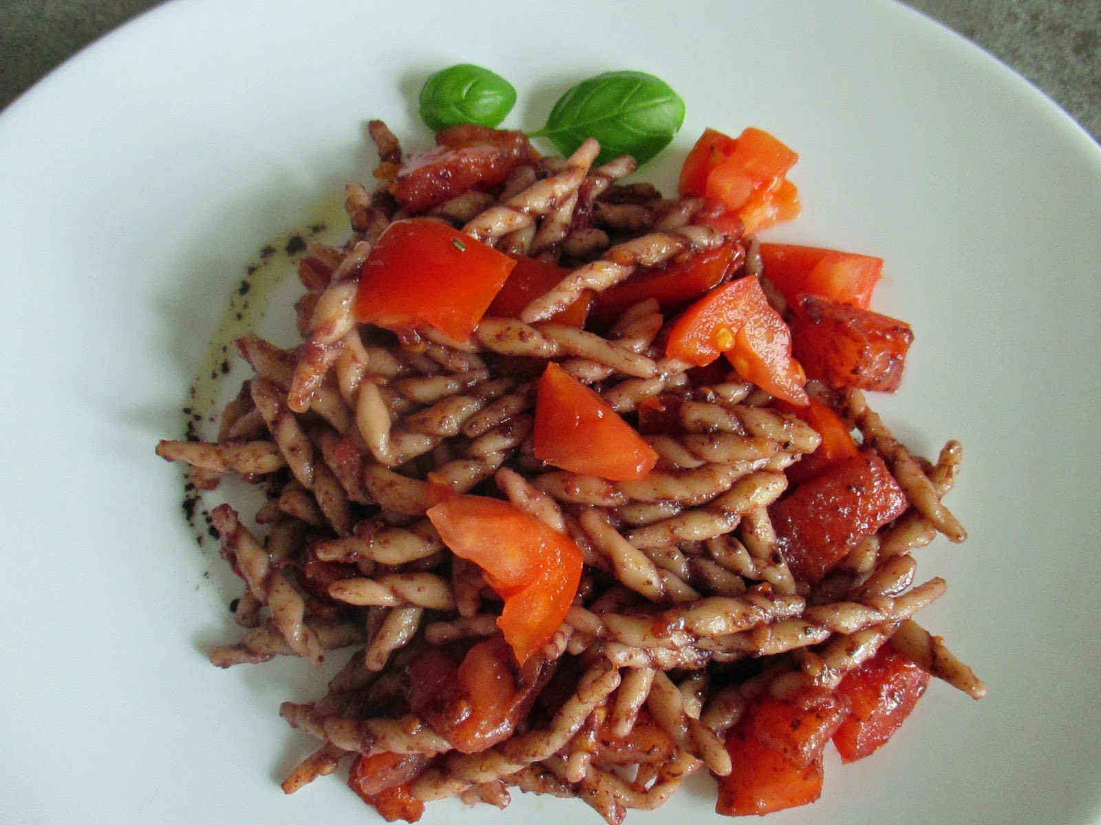 Tutta la bontà del pomodoro fresco con l’amarognolo gradevole del pesto di olive fatto in casa. Da provare