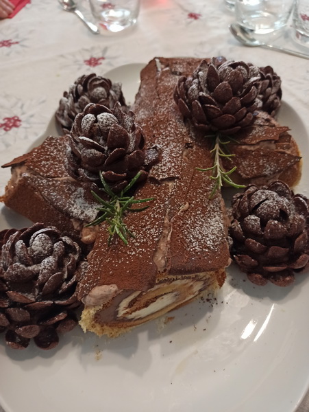 Se per questo Capodanno volete sorprendere i vostri cari con un dolce di grande effetto ma molto facile da realizzare, vi consiglio questo tronchetto che ho fatto a Natale dello scorso anno e che ha avuto molto successo: il rotolo è fatto con il pandoro, il ripieno è a base di nutella e di crema al mascarpone e poi è guarnito con delle strisce di cioccolato che simulano la corteccia dell’albero e con delle simpaticissime pigne realizzate con i corn flakes.