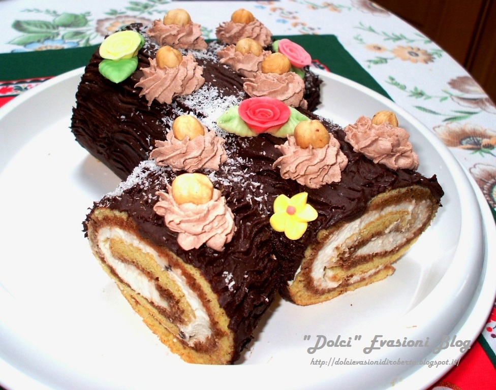 Classico dolce beneaugurante da servire a fine/inizio anno per richiamare fortuna e felicità. Se ne possono fare tantissime versioni e questa è particolarmente facile e veloce, ma non per questo meno buona e d’effetto. La base è sempre la Pasta Biscotto, una specie di Pan di Spagna che rimane elastico, adatto ad essere arrotolato. Poi si può giocare come si vuole con le bagne, le farce e le coperture. Io ho scelto un liquore al caffè, della panna al cacao, del cioccolato fondente e … Buon Anno a tutti!