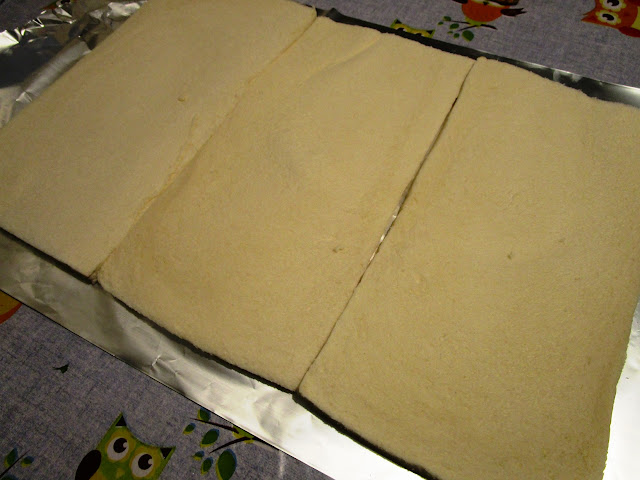 - prendere 3 fette di pane per tramezzini e disporle su un foglio di alluminio (servirà per avvolgerlo)