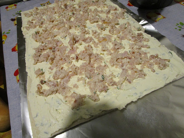 - spalmare sulle fette la mousse di formaggio e mascarpone e spalmare uniformemente