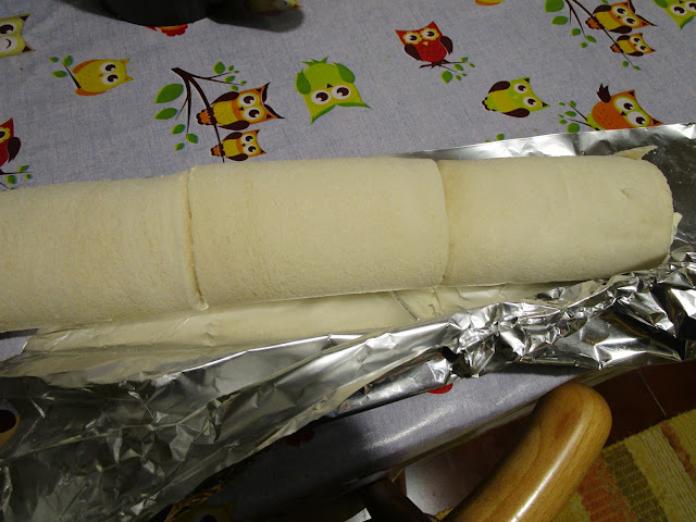 - avvolgere il tronchetto, con delicatezza, aiutandosi con la carta stagnola