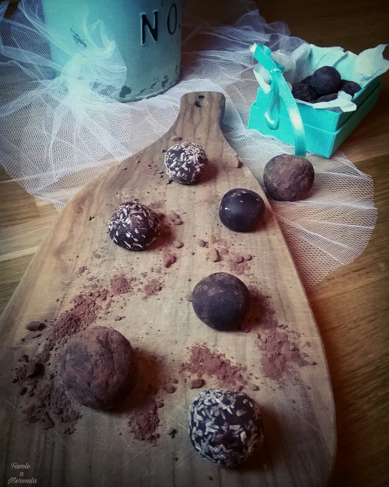 Lasciate riposare la ganache in frigorifero per almeno una notte (vi conviene prepararla la sera) e quando risulterà piuttosto lavorabile, formate delle qnelle aiutandovi con due cucchiaini e rotolatele nel cacao o nella farina di cocco o in quello che più preferite.