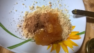 Preparare il ripieno con 80 g di mandorle tritate, un cucchiaino di miele, cannella, scorza grattugiata d’arancia o limone.
