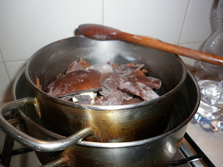 Gli ingredienti sono pochi e la preparazione ancora più semplice. Tagliate a pezzettoni la cioccolata e mettetela in un pentolino a sciogliere a bagnomaria insieme al burro di soia.