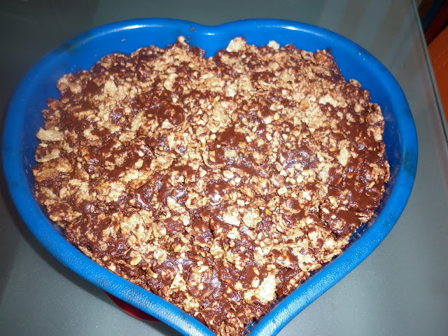 Intanto in un grosso recipiente mettete i corn flakes con le nocciole tritate e aspettate che la cioccolata fonda e si intiepidisca. Non ho aggiunto zucchero in quanto i corn flakes erano già zuccherati.
