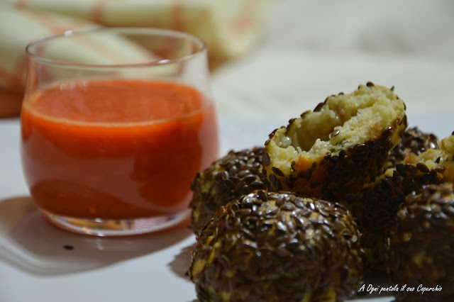 Per prima cosa mettere in ammollo il pane in una ciotola con l’acqua, dopo circa dieci minuti strizzarlo bene. Preparare un trito con prezzemolo, aglio e scorza di limone ed unire al pane strizzato, aggiungere un uovo, il parmigiano grattugiato sale e pepe e mescolare bene. Formare delle palline e mettere al centro un cubetto di formaggio tartufino, impanarle nei semi di lino e cuocere in forno a 230°C per 10 minuti circa.