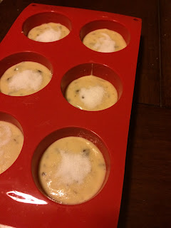messo il composto negli stampi e sopra ciascun muffin ho aggiunto un po’ di zucchero per far fare una crosticina croccante