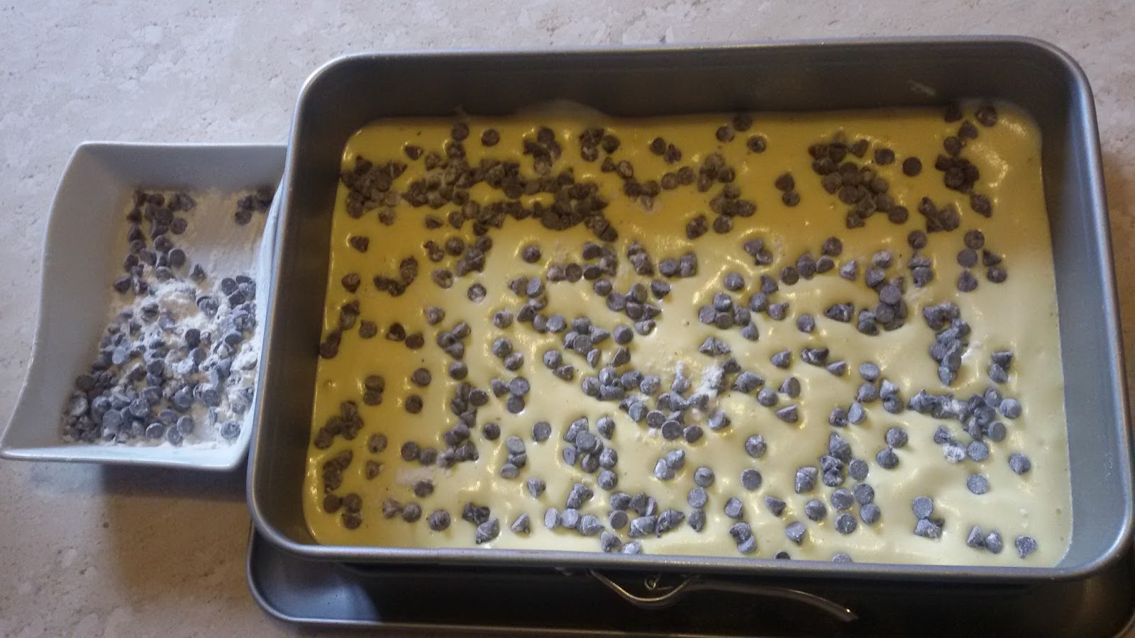 Infarinate le gocce di cioccolato e mettetele nel congelatore per una decina di minuti.