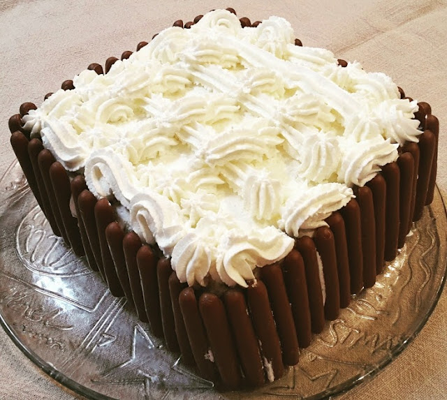 Spatolare la panna su tutta la charlotte lasciandone una parte per la decorazione…