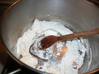 Dedicatevi ora alla besciamella. Unite l’olio alla farina in un’altra pentola. Andate a fuoco medio e girate per creare il roux necessario alla besciamella. (2 minuti dovrebbero essere più che sufficienti). Quando avrete ottenuto la pallina, versate il brodo vegetale e girate vigorosamente per far sciogliere. Aggiungete noce moscata e zenzero in polvere. Sale e pepe ed io ho aggiunto due cucchiai di sugo per renderla rosata. Poichè ho messo le lasagne crude (ecco la velocità) sia il sugo che la besciamella devono essere piuttosto liquidi. Appena bolle potete spegnere e cominciare a preparare la lasagna.