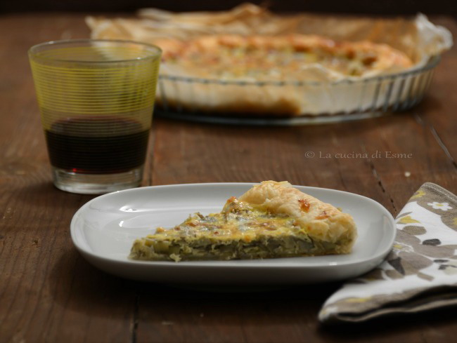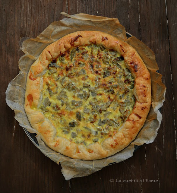 Si dice romanizzata? Ma si ! Romanizzata, romanesca, alla romana un aggettivo per identificare il fatto che gli ingredienti scelti per il ripieno di questa semplicissima quiche sono tra i più classici, schietti e genuini della tradizione laziale: cimaroli, mentuccia e pecorino. Cominciamo dai carciofi utilizzati, sono i tipici romaneschi ad indicazione geografica protetta (IGP) i cosidetti cimaroli o mammole. Il disciplinare di produzione all’art.5 definisce esattamente le caratteristiche che il prodotto deve avere all’atto dell’immissione al consumo: il diametro non deve essere inferiore a 10 cm, devono essere di un colore da verde a violetto e devono avere una forma di tipo sferico. Secondo prottagonista è il Pecorino Romano DOP. Un formaggio a pasta dura, prodotto con latte fresco di pecora, proveniente esclusivamente dagli allevamenti della zona di produzione, eventualmente inoculato con colture naturali di fermenti lattici e coagulato con caglio di agnello in pasta proveniente esclusivamente da animali allevati nella medesima zona di produzione. Si presenta con una crosta sottile di colore avorio chiaro, con pasta compatta o leggermente occhiata e il suo colore può variare dal bianco al paglierino più o meno intenso, in rapporto alle condizioni tecniche di produzione. Il gusto del formaggio è aromatico, lievemente piccante e sapido. Ed infine ad avvolgere tutto il profumo unico della nostra mentuccia. Questa erba aromatica è detta anche nepitella, è simile alla menta nell’aroma, viene utilizzata in cucina per aromatizzare, carne, pesce, funghi e specialmente i carciofi. Le sue foglie sono ovate, con il margine che può essere leggermente dentellato. I fiori sono di colore violetto. Sono delle belle piantine da tenere in terrazzo, tra le aromatiche. Allora, ieri al mercato ho comprato delle mammole meravigliose e una piantina di mentuccia bellissima, il pecorino in frigo c’è sempre e … cena sfiziosa e veloce presto pronta!