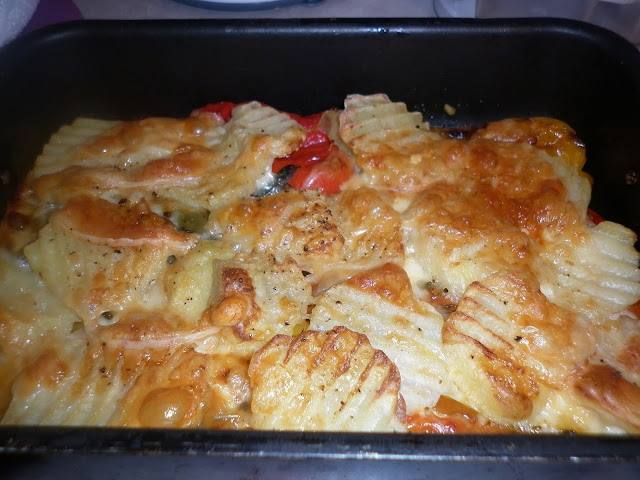 Quando i peperoni sono a metà cottura cominciate ad assemblare la teglia.