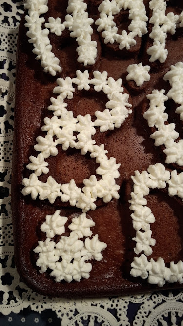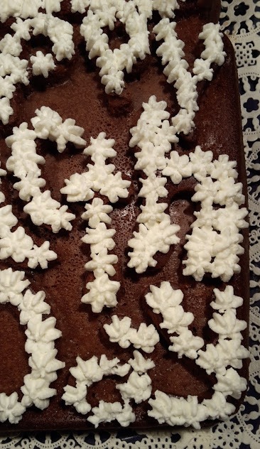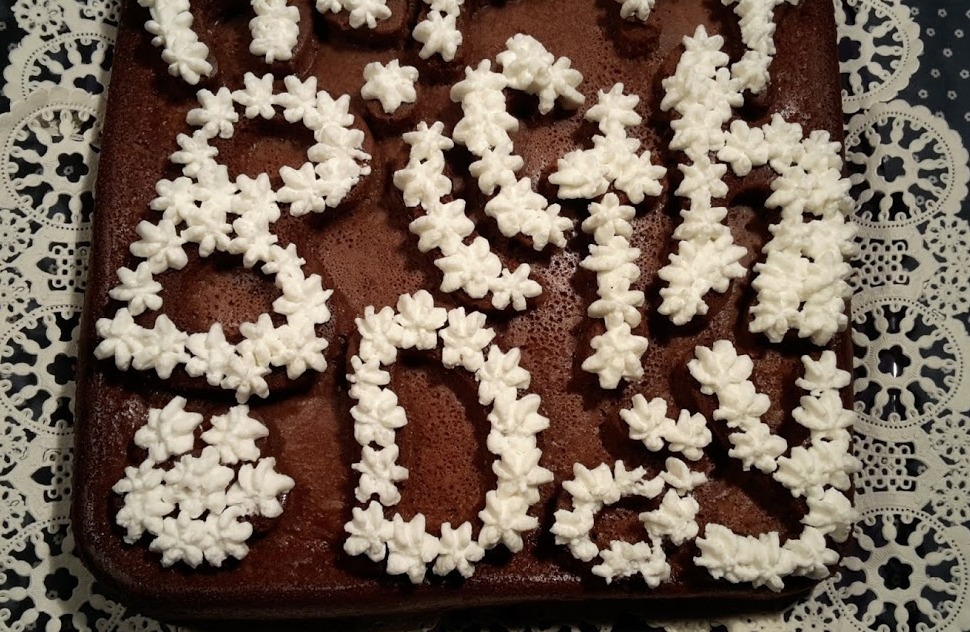 Trasferire il tutto in una sac a poche e decorare il dolce con piccoli ciuffetti seguendo la forma delle lettere…