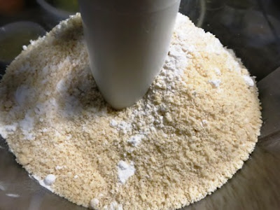 Mescolare la farina di mandorle con lo zucchero a velo..