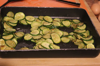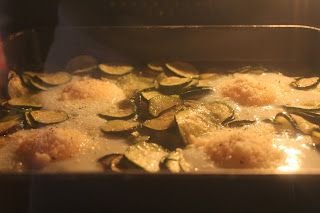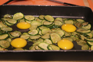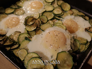 Trasferire le zucchine nella teglia unta precedentemente, formare 4 buchi