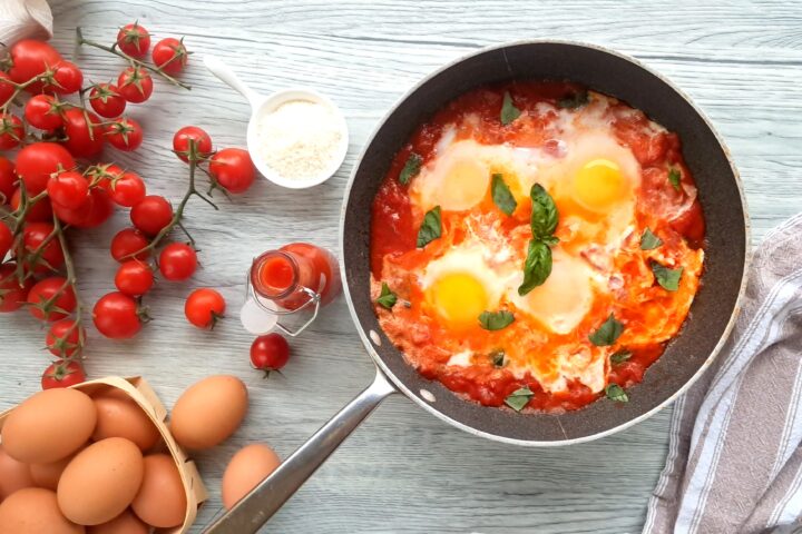 Le uova in purgatorio sono una ricetta classica, perfetta per tute le stagioni, ma che da il suo massimo in estate, quando troviamo i pomodori maturi nell’orto o dal contadino di fiducia.
