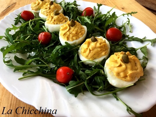 Ma sì…qualcuno dirà: “ma che ricetta mette la Chicchina?! tutti le sanno fare….può essere, anzi probabile, ma le uova ripiene non possono mancare nel mio blog…a casa piacciono tantissimo e anche nella mia famiglia di origine rappresentavano un antipasto irrinunciabile.