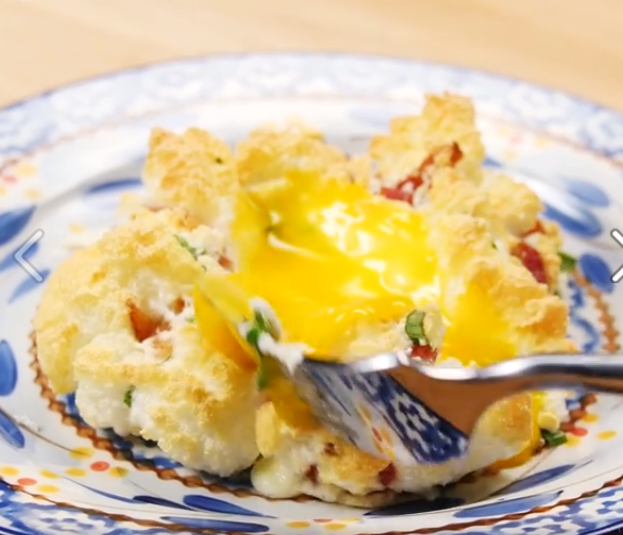 Ricetta: – 2 Uova – Pezzetti Pancetta – Cipollina Erba – Graffiato Parmigiano Gemme separata lui. In un CONTENITORE refrigerato di metallo, Batte si Chiare sul punto di torrone. Miscela la pancetta, cipolla e parmigiano. Vuota il micelle in Una Teglia da forno e crea una di OGNI centro buco micelle con il dorso di un cucchiaio. Inforna a 230 ° C per 3 Minuti. Metti lo Gemme in nuvola OGNI, e cuocere per 3 Minuti Altri 230 c.