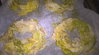 Con le mani formate su una placca da forno rivestita di carta delle corone di porri.