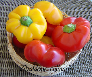 Lavare i peperoni, e tagliare listarelle regolari diritte e spesse circa 1/2 cm. posizionarli sopra alla crema.