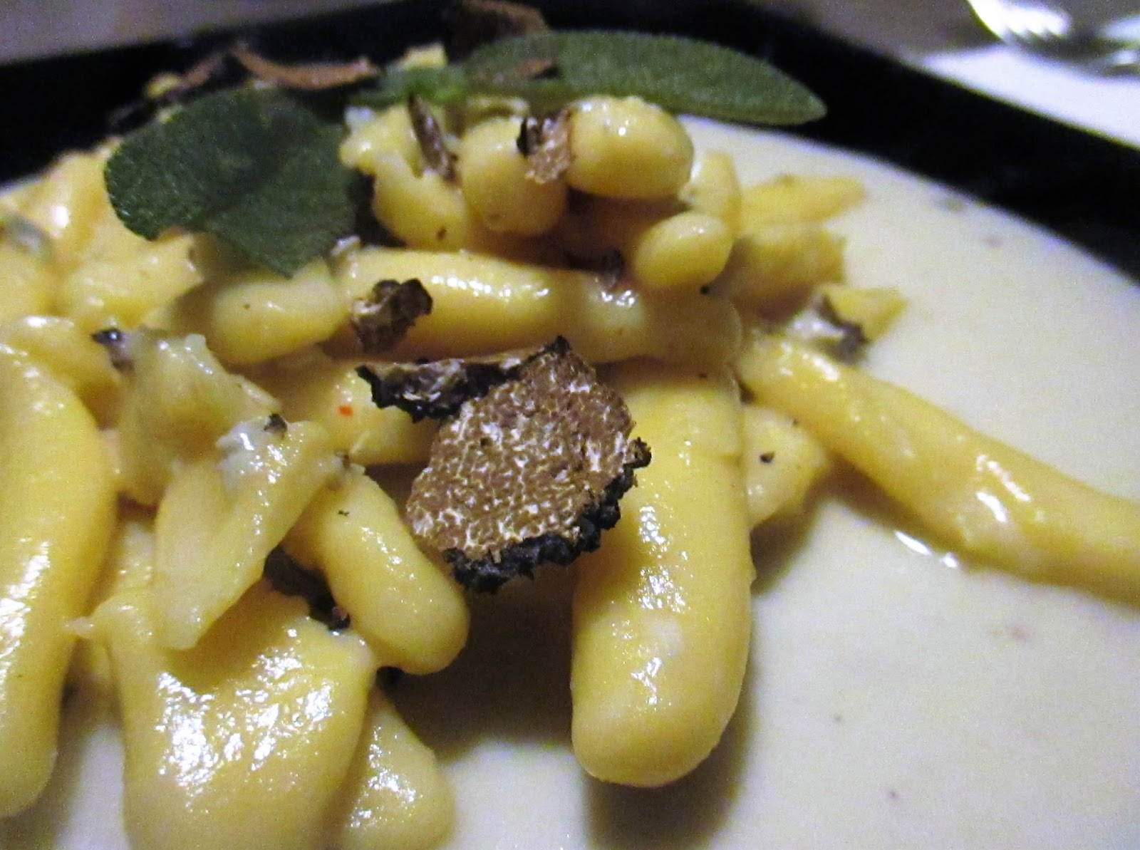 Chop the leek finely and add to the cream with a few sage leaves and grated truffle.