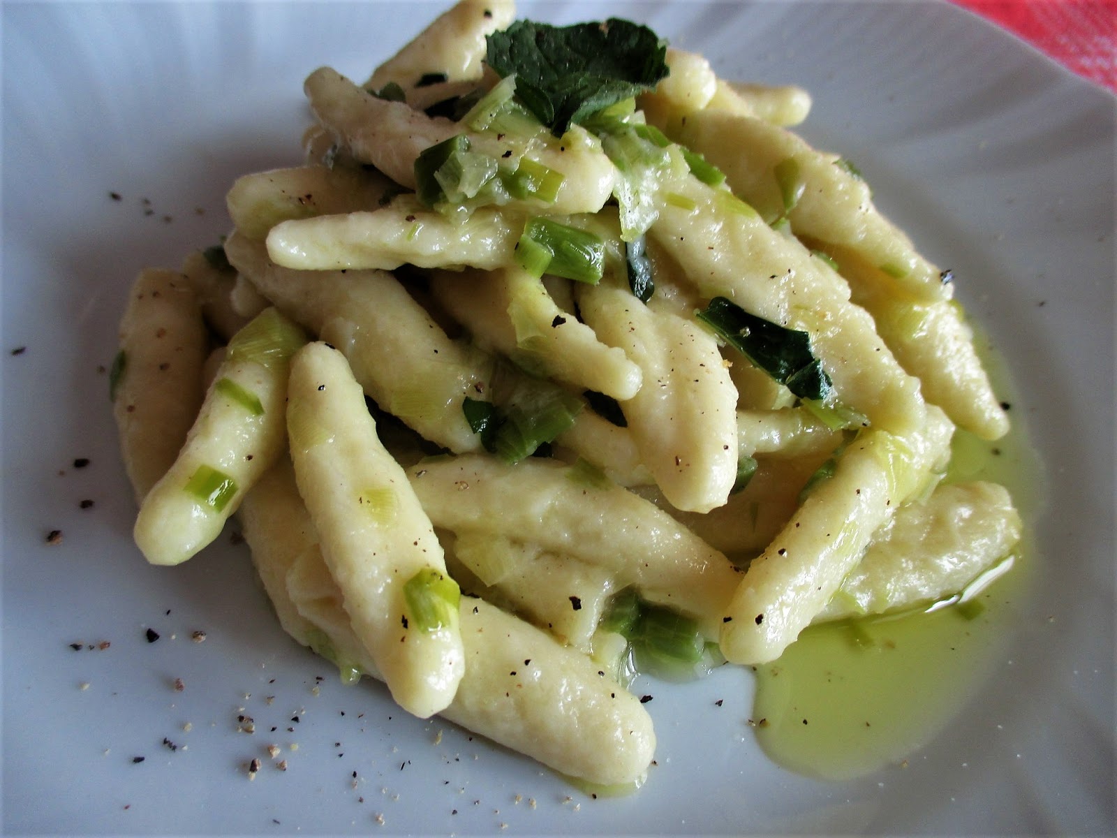 VAL VARAITA RAVIOLE WITH LEEKS AND MINT SAUCE .- Raviole della Val Varaita con porri e salsa alla menta